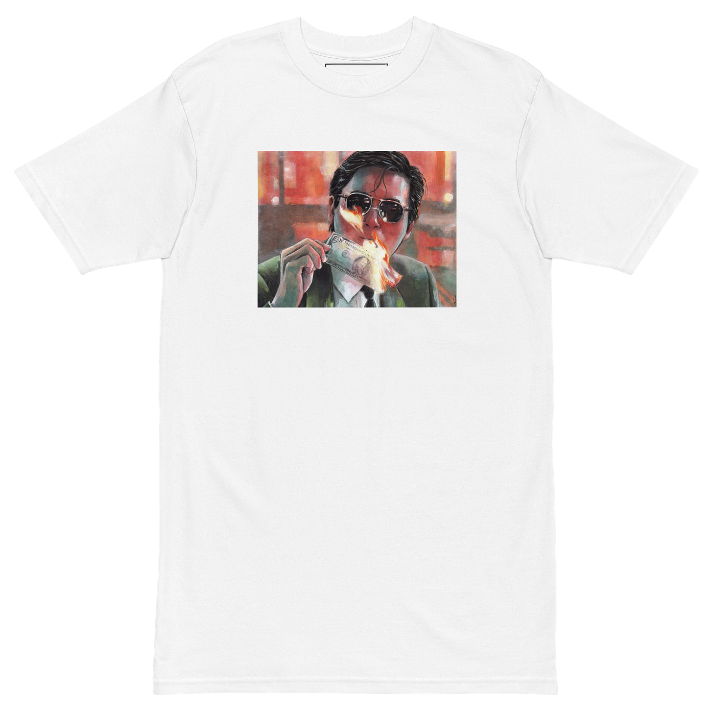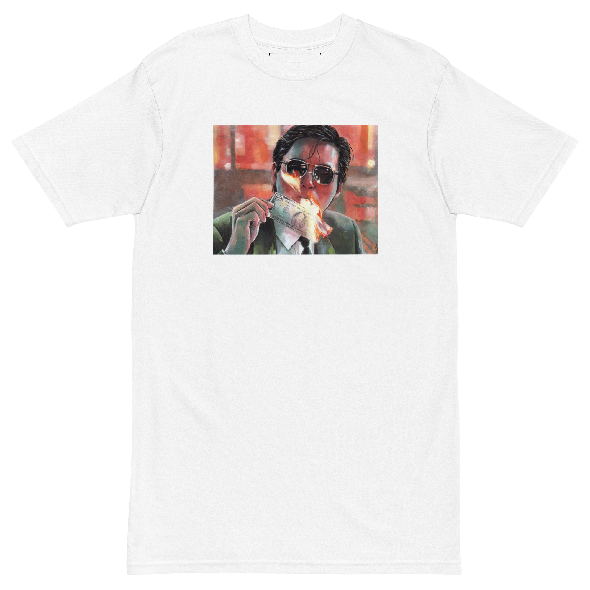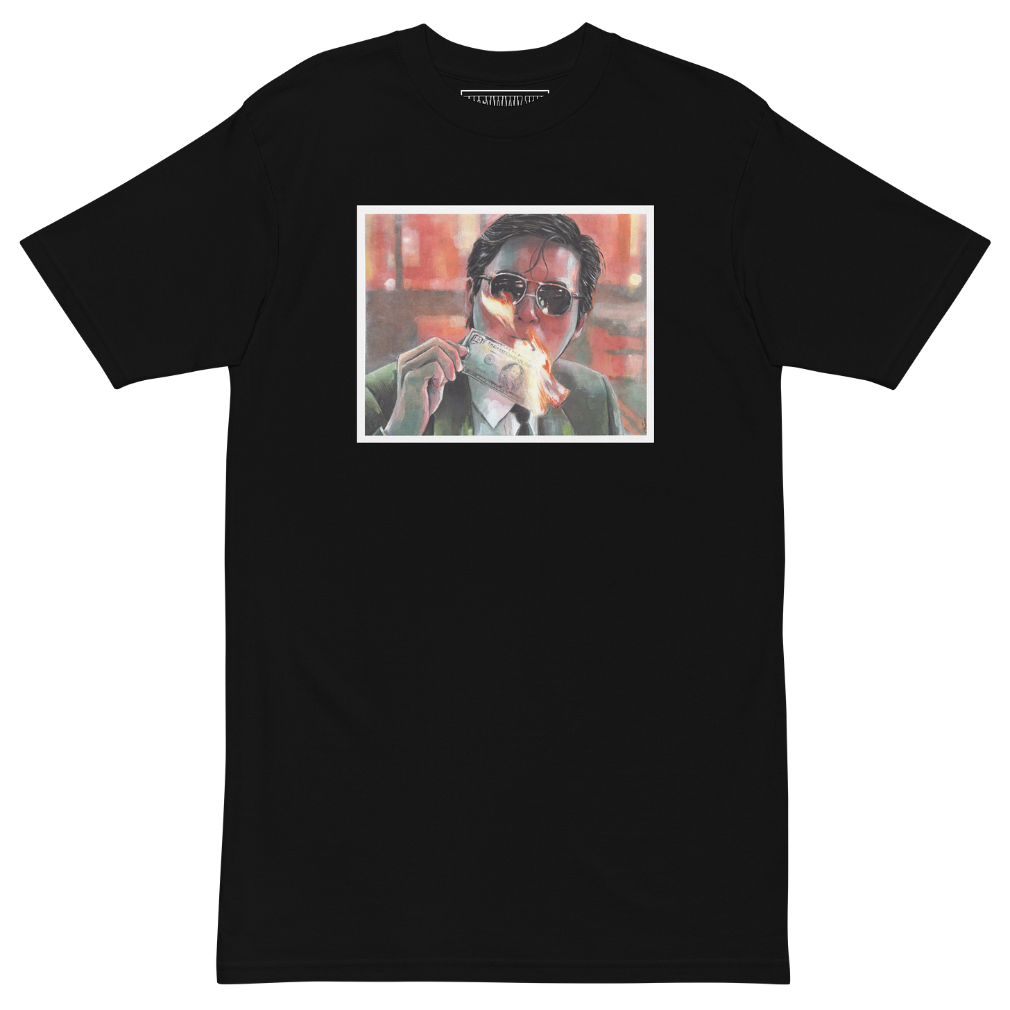 As part of small business Saturday we will be launching two new projects. Originally released in 1986, A Better Tomorrow was directed by John Woo, produced by John Woo and Tsui Hark. Friend of the program Louie Chin illustrated this iconic scene of Mark Lee (Chow Yun-Fat) burning counterfeit money to light his cigarette. ABT is available here.